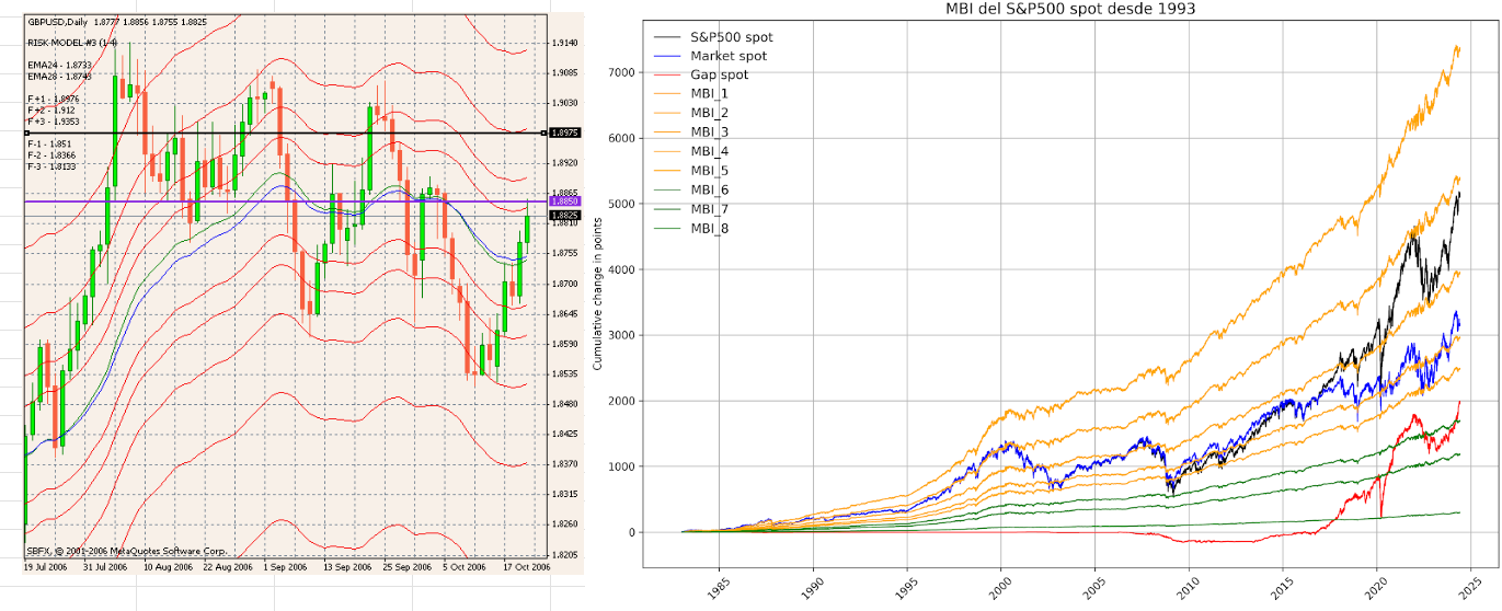 Y como le decía a X, si que existen semejanzas entre los túneles de Vegas y el indicador de la Mini Jefa (MBI), aunque no se calculen de la misma manera, ni el uso de Phi sea el mismo, pero es curioso que se parezcan. Investigare el indicador de Vegas a largo plazo, para ver en que se parecen y en que se diferencian, ahí siempre hay chicha.
