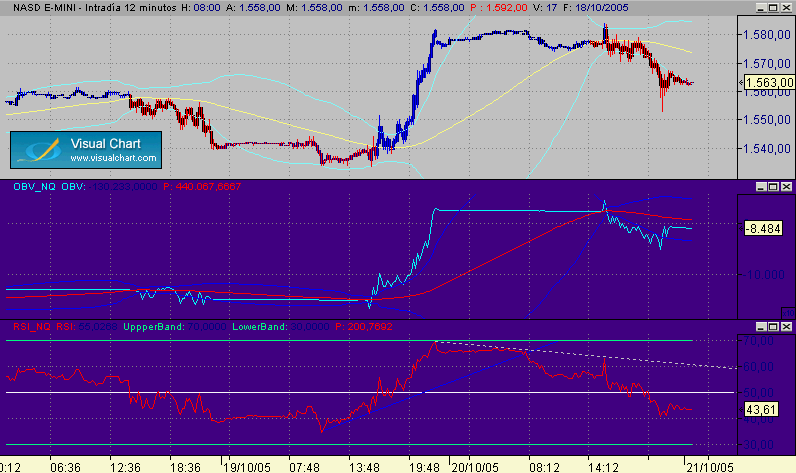 El indicador guia es el OBV, este indicador en mi opinion es con diferencia el mejor indicador neto del volumen, muy importante sus niveles de soporte-resistencia.
