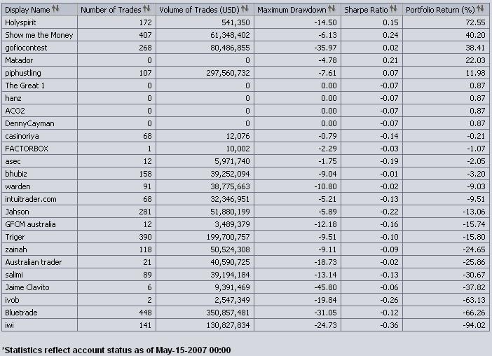 y en otra pero con la misma cueta, de 106 tip@s https://fx2.oanda.com/mod_perl/fxcontes ... ntestId=47 ( clicar en MEMBERSHIP ) q ya se han dao de baja 5 y q con un 20% en cosa de mes y medio vas en 20º lugar....juasjuasjuas