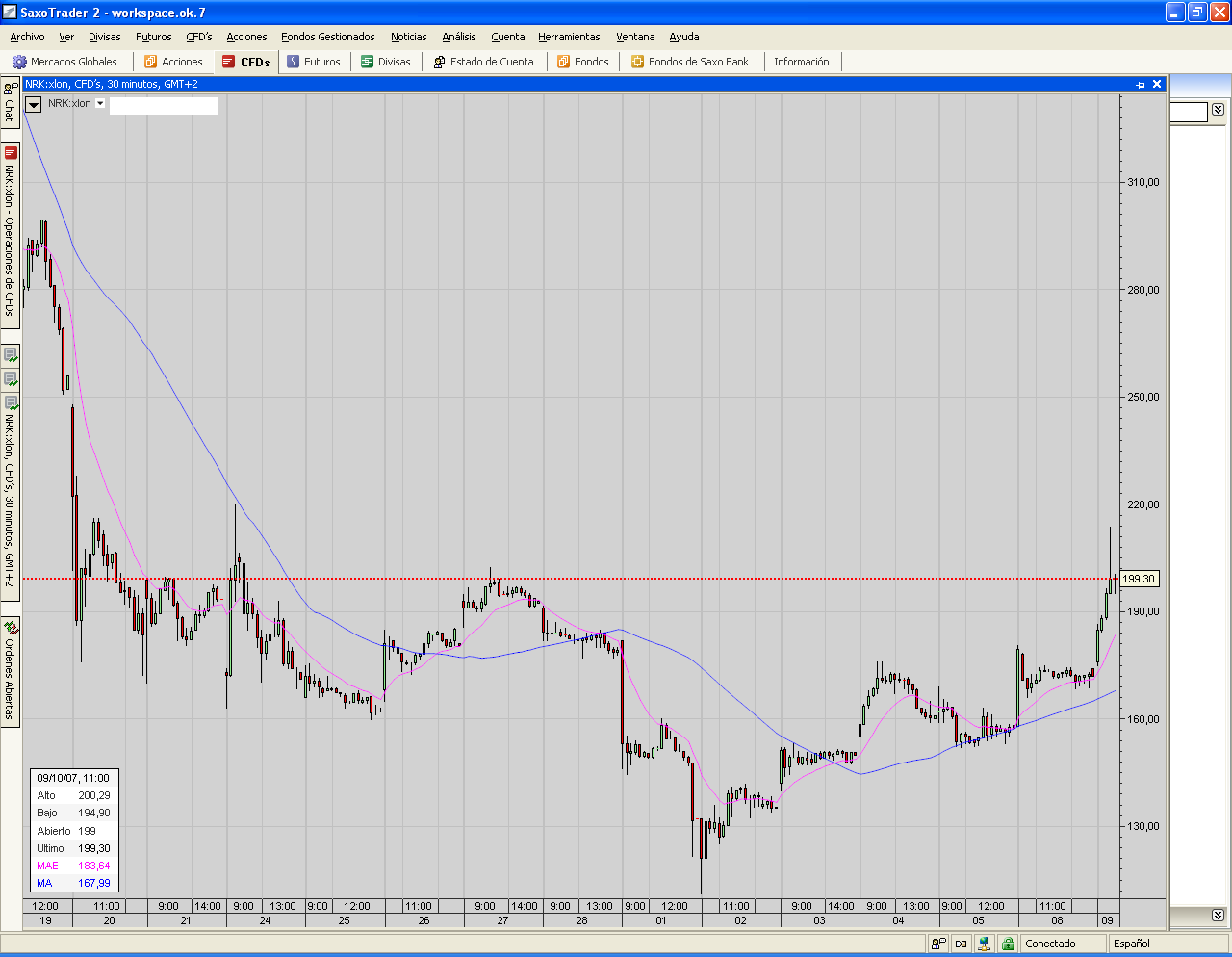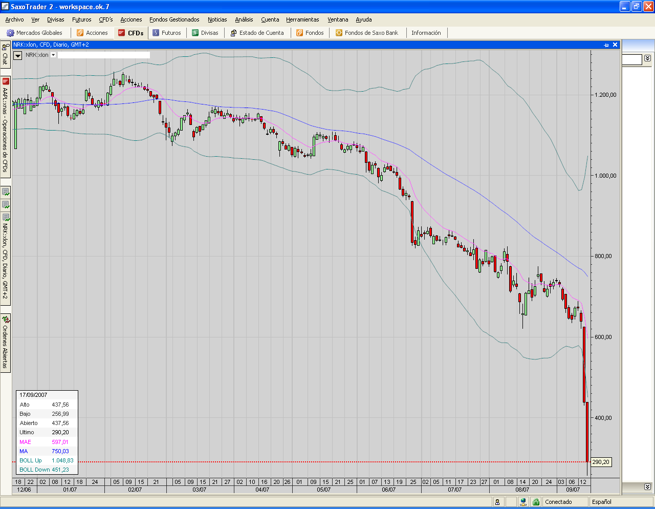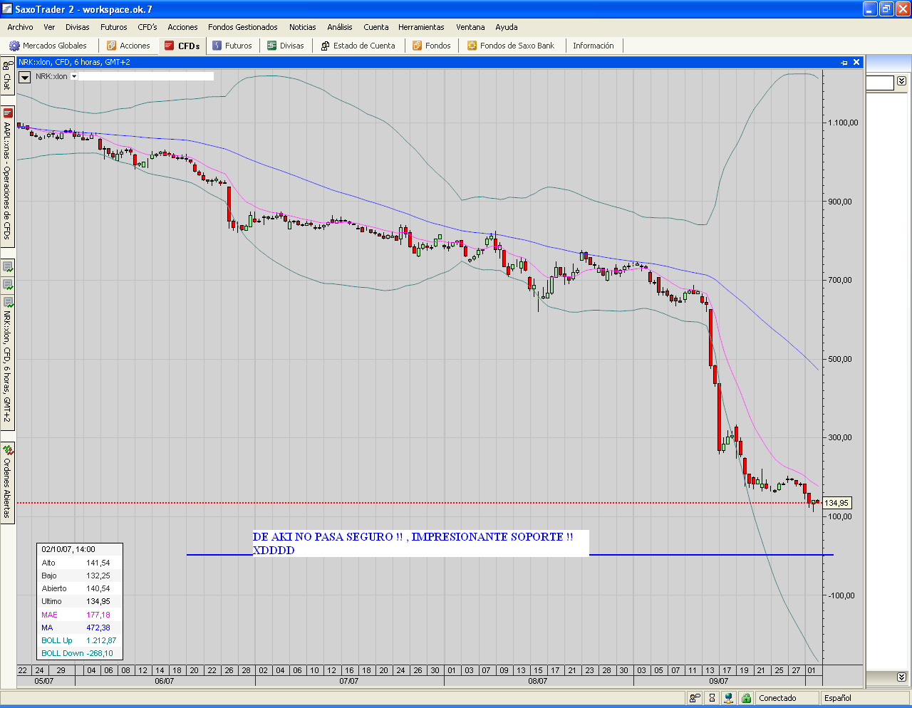 A la vista del gráfico podríamos decir ke la tendencia alcista ya había sido rota hace tiempo, y ke estaba en plena y marcada tendencia bajista desde luego, pero kien podía imaginar tal descalabro ...........