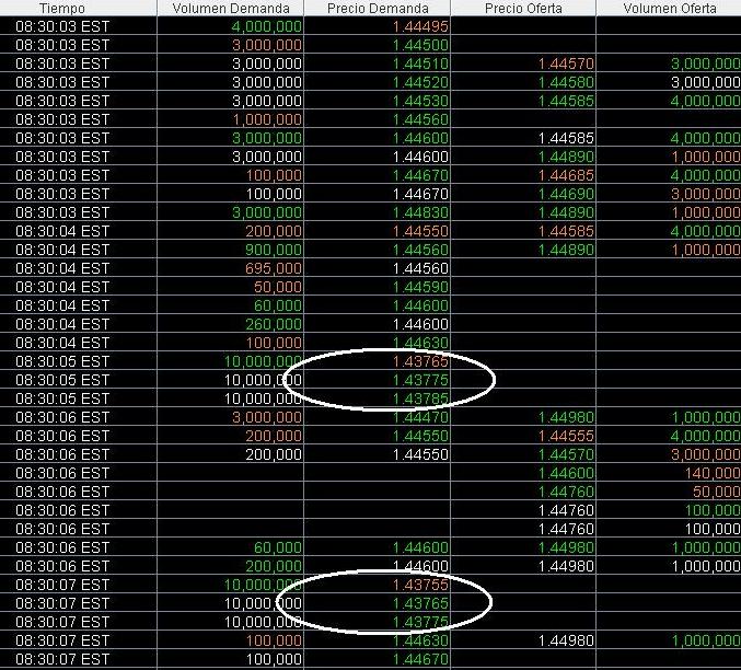 NFP de hoy, EUR en 1.448X, TWS abre puntas y vemos el euro unos 100 pips abajo.