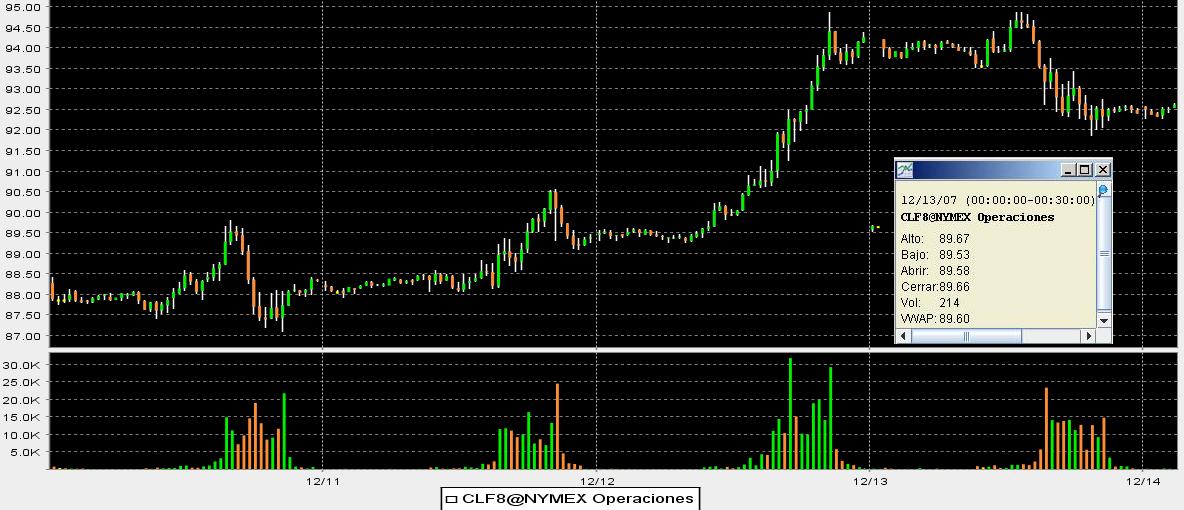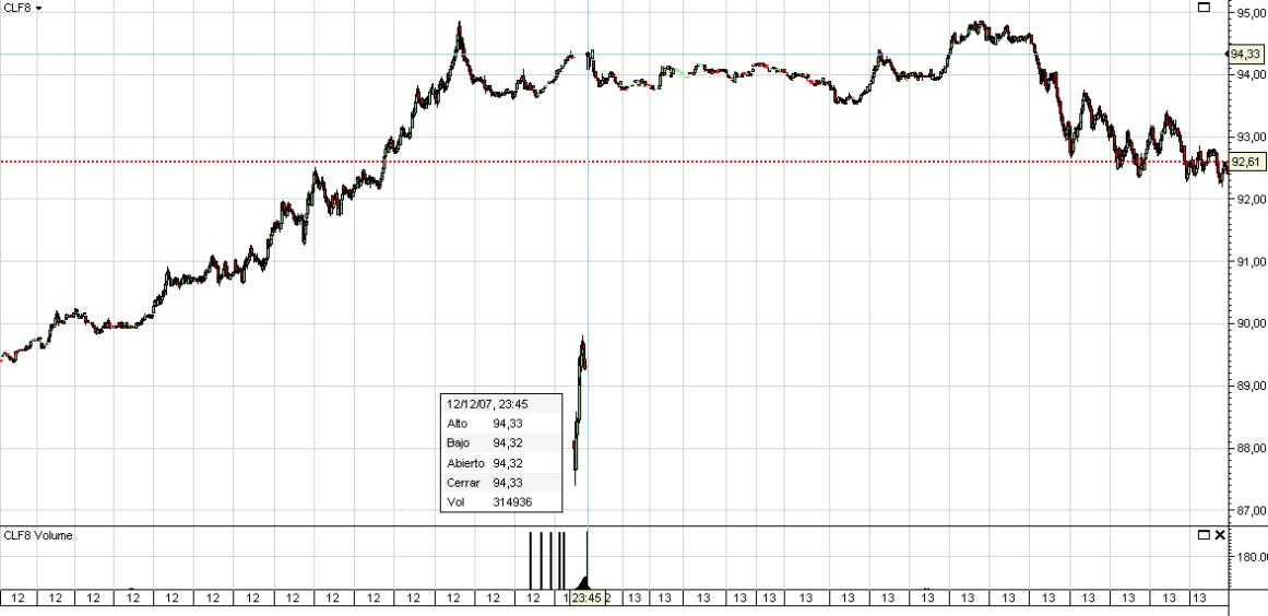 Por lo visto, ayer 12/12 :-D el futuro del NYMEX pasó de cotizar sobre los 94 a caer hasta los 89. En un solo cruce!!