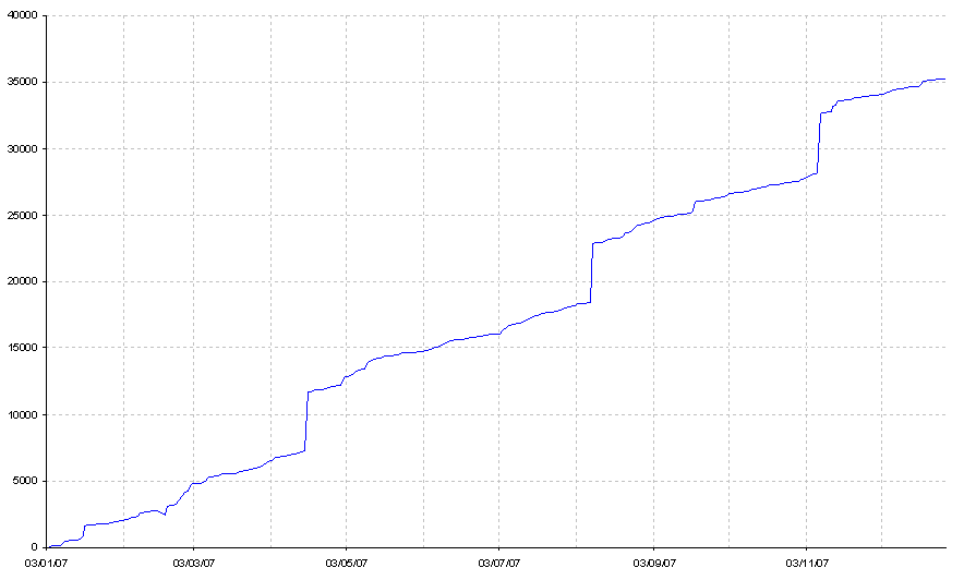 Y para apoyar más, si cabe, tu exposición, a continuación muestro el gráfico de la curva de resultado neto de un sistema aplicado al BUND durante el 2007.