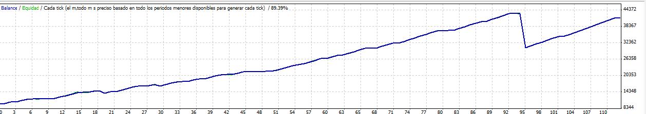 Hola, pues ya me extrañaba a mi tambien, una recta tan recta, pues haciendo un ajuste de los lotes a arriesgar, en vez de 0.1 fijos como tenia puestos, arriesgar un 10% o 5% por operacion...saldria una progresion aritmetica espectacular.Bueno me bajado el historial de 4h de la base de datos de metatrader, que solo llegan hasta el 99, he ajustado unos parametros y he hecho el backtesting en modo grafico, se a tirado como unas 3 horas ahi y yo mismo he comprobado como daba la entrada en directo ...parecia muy real