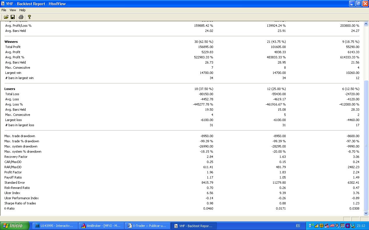 No tengo el ami y me costaría unas cuantas horas o días entre que instalo y demás. Si alguien que maneje esta plataforma es tan amable de cargar el sistema en el ibex y decir si las estadísticas coinciden, se lo agradezco.