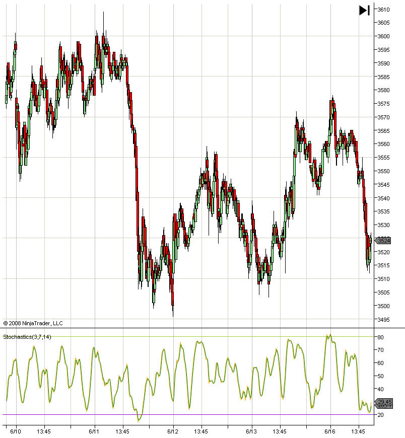 El estocástico del NinjaTrader no coincide con el del VisualChart y no es precisamente por una cuestión de datos históricos pues he tenido cuidado de que los gráficos fueran iguales.