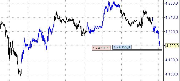 Dejé correr el resto con stop en 4.243 y con objetivo los 4.222, los tocó pero viendo la debilidad opté por esperar a ver si había rotura, y por tanto ke se kedaran incluso abiertos, es decir, ke pasaran de ser cortos intraday para swing.
