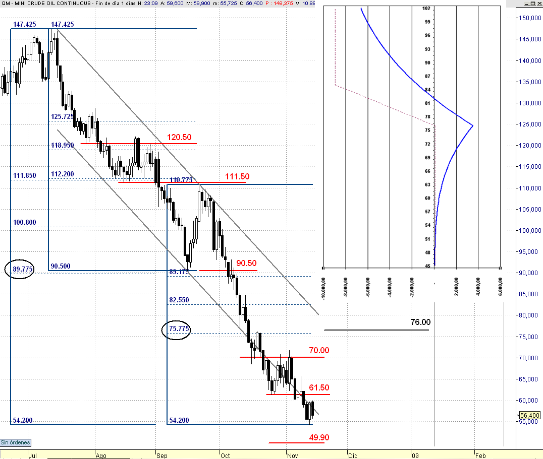 algo mAs ? weno, a ser posible un contrato mini de 500 barriles por cada 22000€ de equity de forma q sea a 1:1 y dispuestos a aguantar hasta los 49$ como precio de "peor escenario" o lo q seria lo mismo los 3500 mA o menos de euros q se piden de garantias, mAs los otros 3500 pal posible DD ( un 10% ), q ia si se kiere proteger y el como ni entro, usea, 7000 mínimo por contrato si se kiere usar algo de palanca