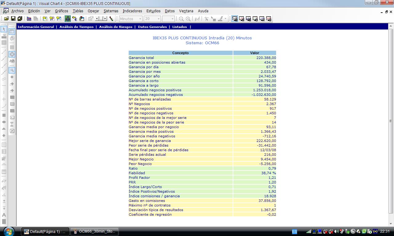 El tema es que quien quiera, le heche un vistazo a las estadísticas, y exponga cuál es el problema del sistema, o cuál cree que puede ser su punto débil, y en qué debería mejorar. También se debe aportar una posible solución. Si os apetece participar y la gente expone sus puntos de vista, luego voy a colgar el sistema (es en visual chart, y en plataforma visual), y que cada uno lo mejore, lo cuelgue de nuevo con sus mejoras y cuelgue sus estadísticas.