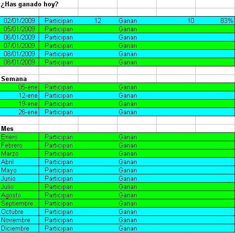 de este modo, ademas de ser mas relevante a mi entender, sería más fácil seguir en una hoja excel los resúmenes, porcentajes, etc., ke podrían irse actualizando y colgando en el foro.