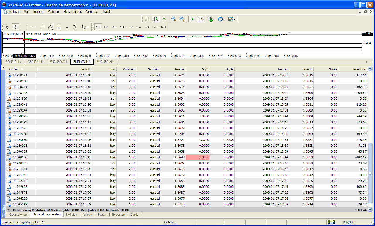Ayer por la noche me desvelé y me puse a idear una operativa para Forex (¿o me puse a pensar una operativa, y por eso me desvelé?) La cuestión es que esta mañana me he levantado y me he conectado a la plataforma demo de XTB y me he puesto a practicar lo que había pensado... y salvando algunas peculiaridades del Forex que no conocía, la cosa me ha ido bastante bien.