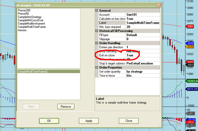 ¿Cómo se quita el "exit on close" cuando aplicas una estrategia?