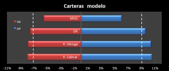 Para calibrar la calidad de una optimización con alguno de los criterios mencionados es preciso comparar su performance con la de otra carrera sin optimizar que llamaremos portfolio benckmark. Existen dos enfoques sobre su construcción: Algunos gestores prefieren emplear como benckmark carteras equiponderadas por riesgo (Equal Risk Portfolio). Si bien el problema de este enfoque es que el riesgo de un activo -por ejemplo medido por la beta en el caso de las acciones de un índice- es un parámetro muy volátil y hay que hacer continuos ajustes. Por ello la mayoría de los gestores utilizan como benckmark portfolios tipo 1/n o equiponderados por valor (Equal Weighted Porfolios). Esta práctica está muy extendida en la industria; existen índices equiponderados y productos invertibles como ETFs1 que baten sistemáticamente a los índices convencionales.