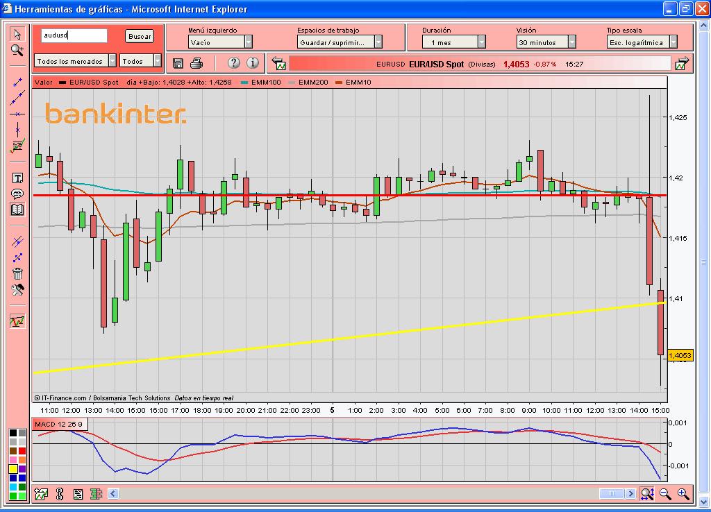 Ya lo hizo en 30' el HCH, ahora está en la base del canal, encima viernes por la tarde, yo cierro cortos y el lunes ya veremo dijo un ciegobolsa1 escribió:Por cierto, que si completa el HCH, puede rebotar a 1.41 y luego acabar el retroceso es hasta 1.3860 aprox...