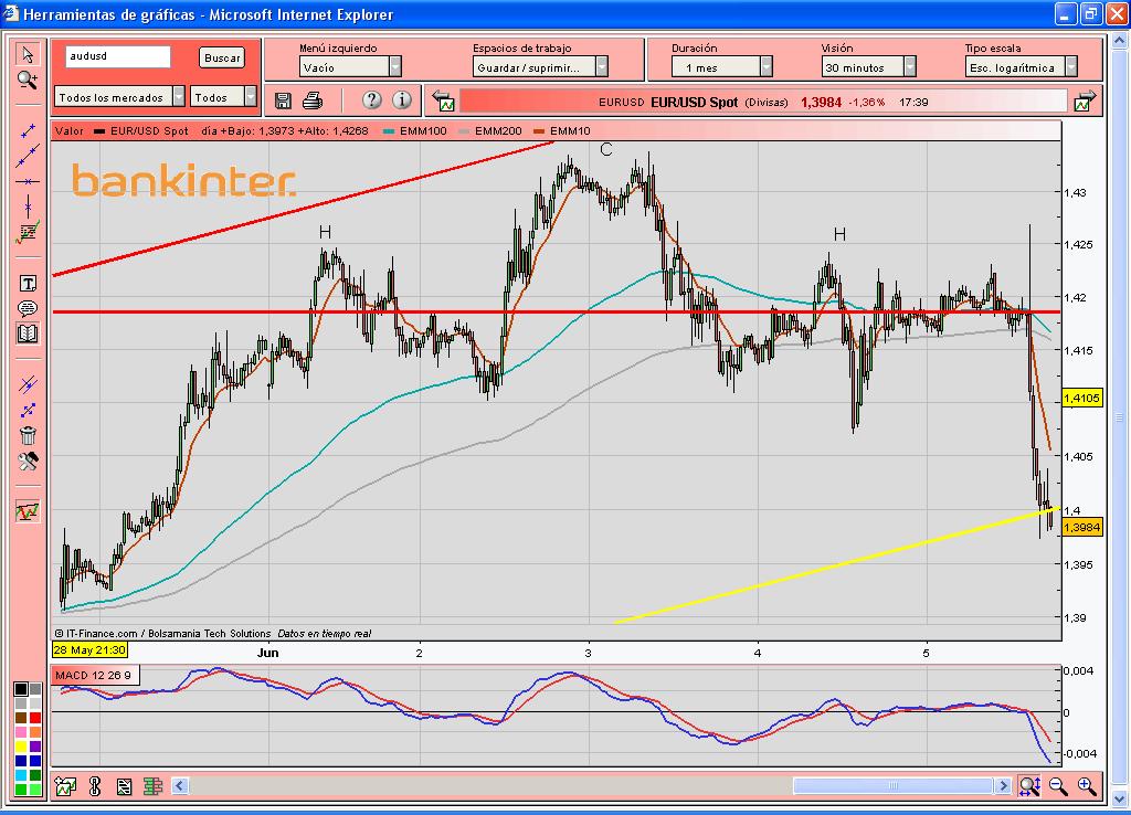 Ya lo hizo en 30' el HCH, ahora está en la base del canal, encima viernes por la tarde, yo cierro cortos y el lunes ya veremo dijo un ciegobolsa1 escribió:Por cierto, que si completa el HCH, puede rebotar a 1.41 y luego acabar el retroceso es hasta 1.3860 aprox...