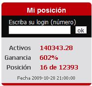 Tambien puede caerse alguno y recuperar posiciones sin hacer nada... yo ahora voy a pensar muy bien mi próxima posición que aunque haya caído a la 6ª posición, la distancia con el primero se ha recortado en casi 20.000€, así que mejor que ayer, y (esperemos) peor que mañana!