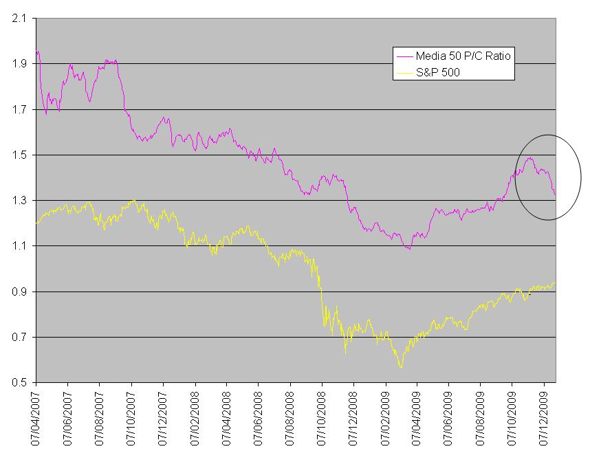 A mi el ratio put call no me parece nada interesante y es muy relativo, pero si lo comparamos con este indicador de la página technical take http://thetechnicaltakedotcom.blogspot. ... .html#more
