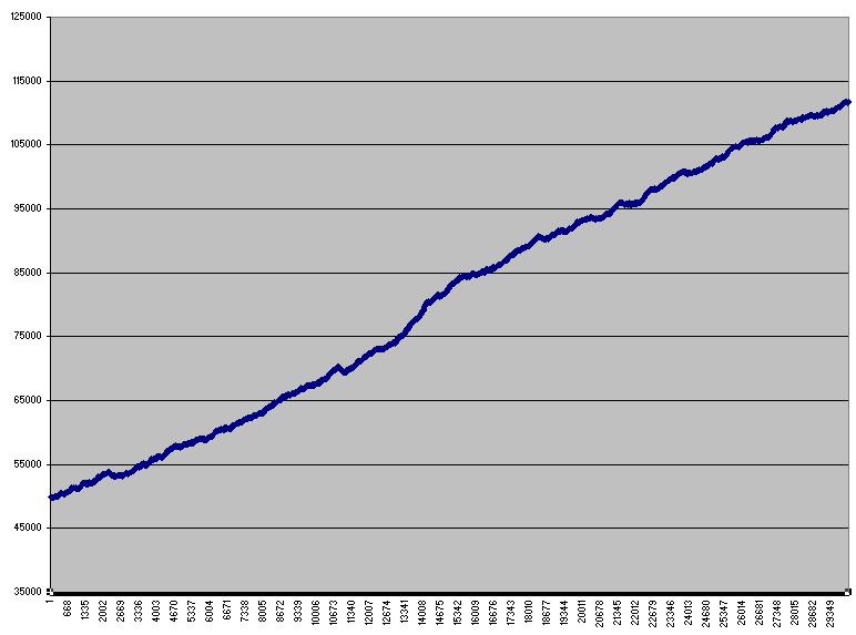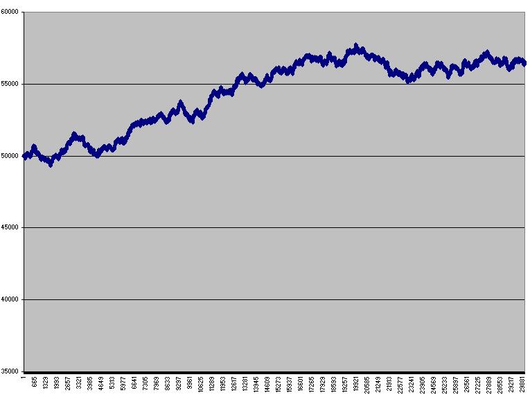 ¿ES sobre un mercado real o un mercado sintético?agmageton escribió:Bien un ejemplo tres espacios de tiempo, con entradas aleatorias a la probabilidad del 50% con stop o profic iguales. cada prueba con 30.000 operaciones.(sin poner comisiones)