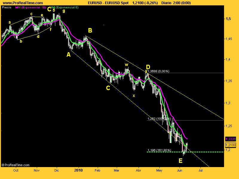 En cuanto al euro coincido en lo esencial.....yo creo que lo lógico sería que recuperara la parte alta del canal bajista ese por donde navega.... ;)