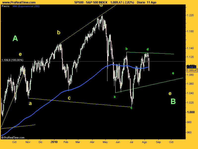 El SP ha acabado la onda e del triángulo, con que el euro debería acompañar con un movimiento alcista ya que parece haber tocao un suelo...