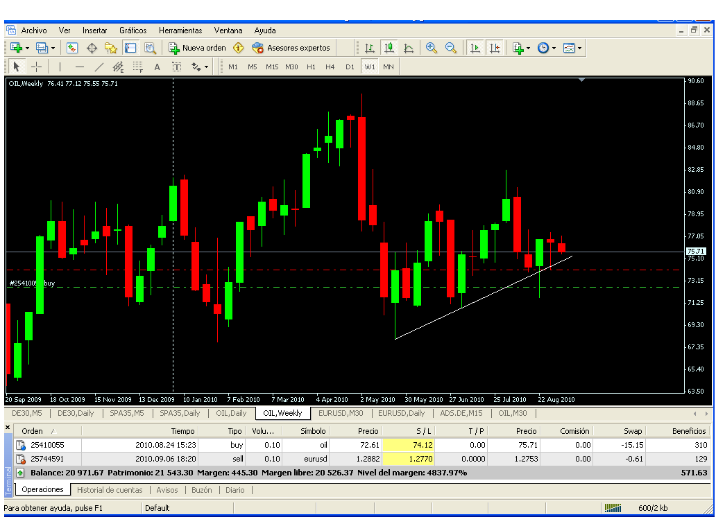 Compra 71.72 Ven Sep 17 contratos.......cierre en 76.53 $