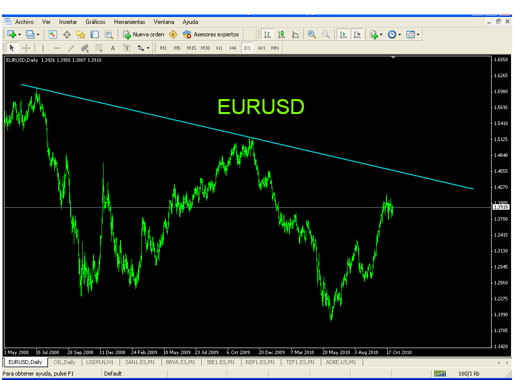 Parece evidente que quiere ir a buscar la recta inferior de un triángulo que comenzó a formarse a principios de 2008.