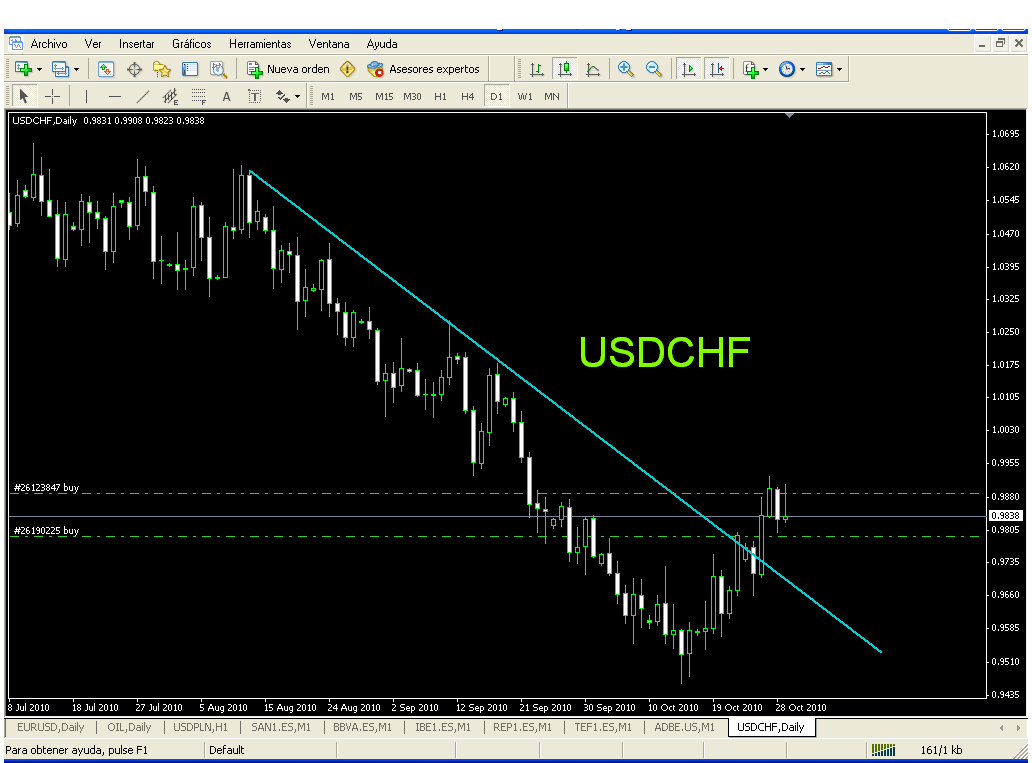 El euro con máximos decrecientes...., dollar contra el franco suizo iniciando el despegue etc etc.