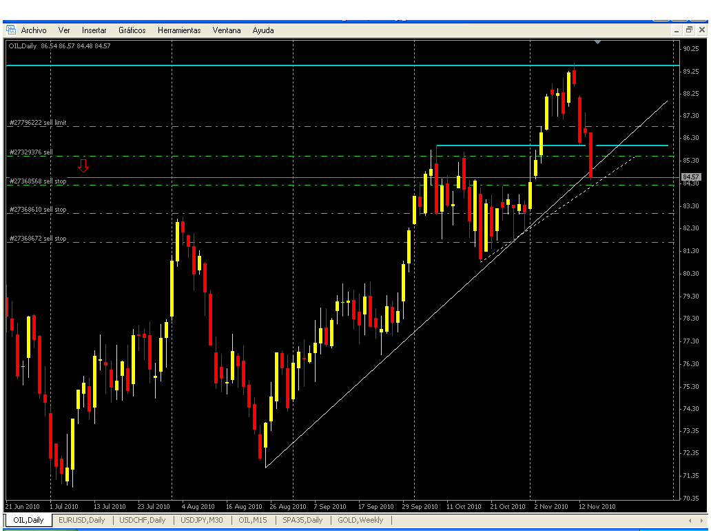 Cómo es un royo contar toda la gestión que he ido haciendo, dejo el libro de órdenes con las operaciones hasta ahora del crude oil 8, por si a alguno le pica la curiosidad (las verdes., hay un par de oil con pocos pipos junto a dos limit anuladas…se me fue el dedito al cancelar…no se vale