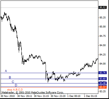 Tal y como he planteado este problema si el precio se va a favor y completas el nº de fracciones, aunque luego el precio retroceda por debajo del punto de entrada no puedes promediar a la baja. Lo mimpide el riesgo, es decir, en el momento que completas el nº de fracciones o consigues el objetivo o te salta el Stop, no hay otra.