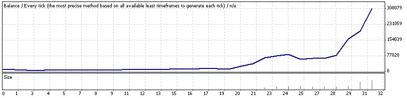 Si reduce cuando pierde y aumenta cuando gana sería una ANTIMARTINGALA, ¿o no?. En todo caso, está claro cual es el criterio de posicionamiento.Yo apuesto a que la siguiente posición es: 30'91 lotes.