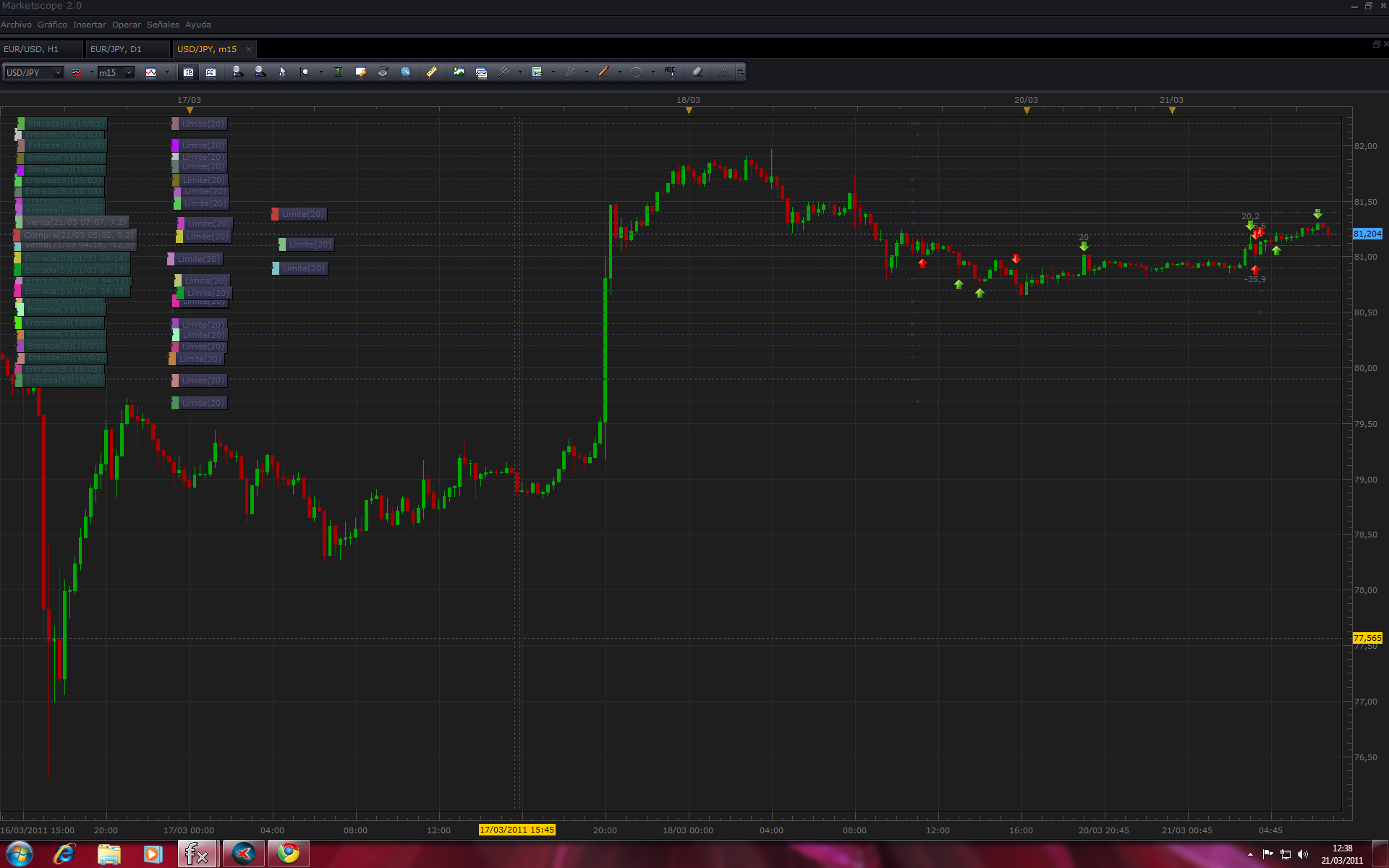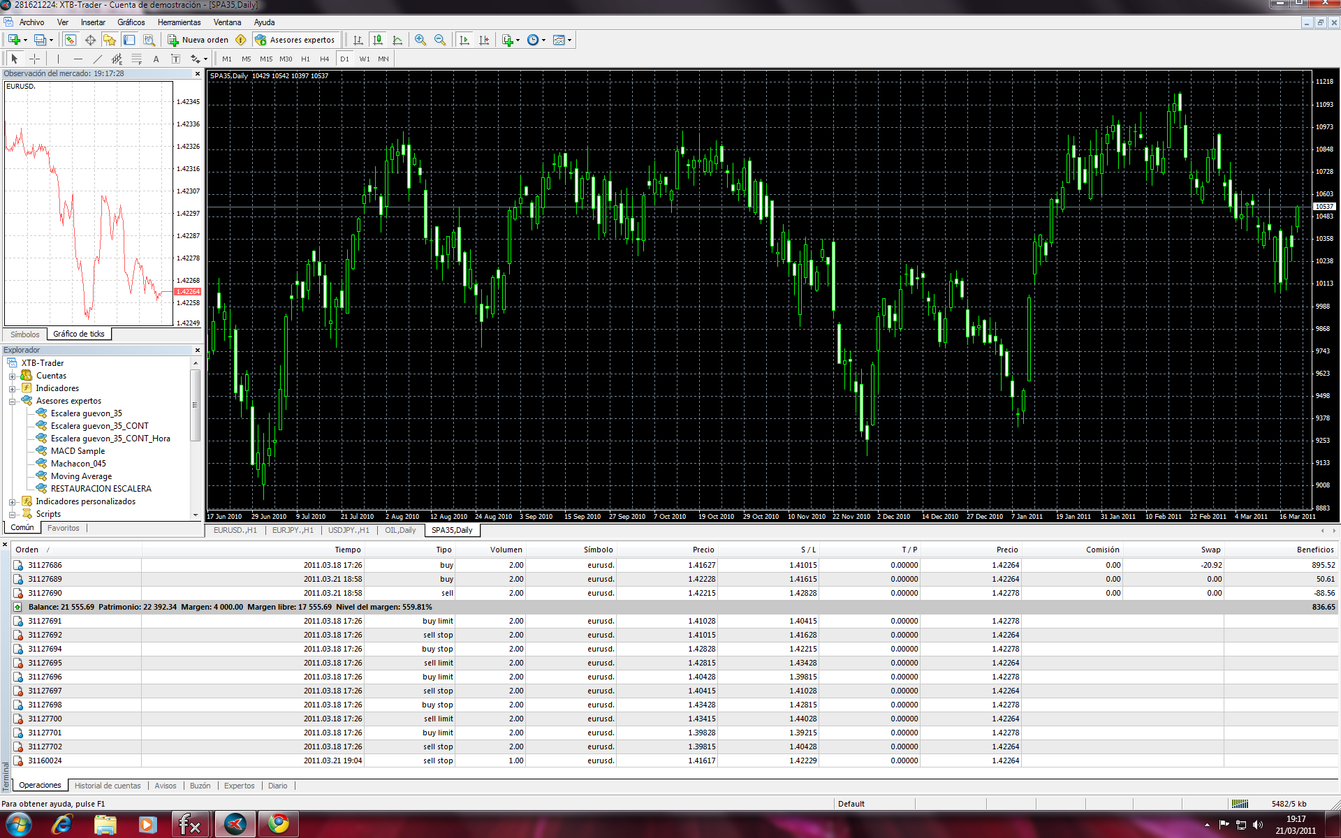 Asi que... comence a probarlo, coji (no se si es con g o con j) el par usayen que yo no lo ando mucho, y ademas se ajustaba a mis parametros de marcha, le puse 20 pipos de distancia (2 para el broker y 18 para mi), y espere...