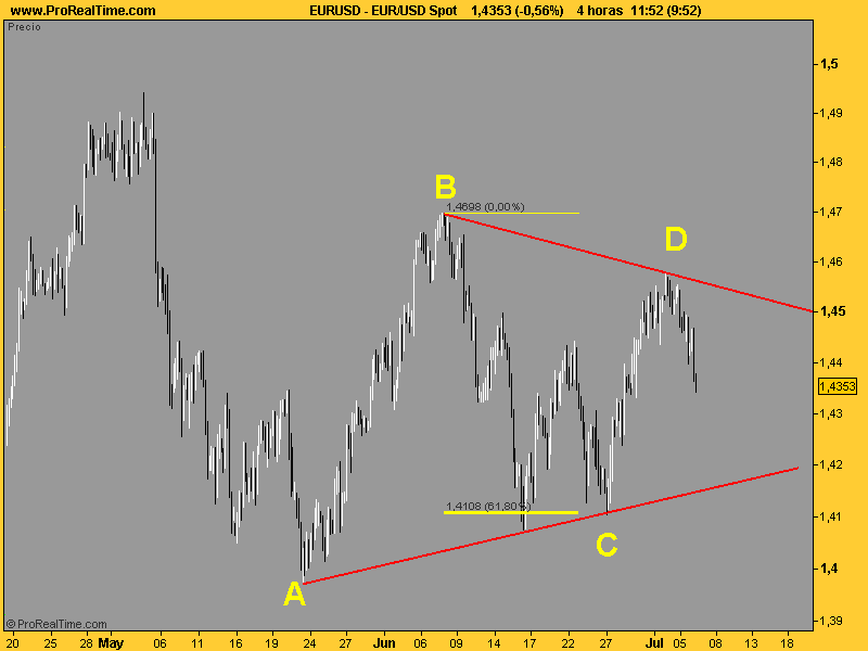 -El lanzamiento después de un triángulo será maomeno como la onda A, u sea unos 1000 pipos, lo que nos llevaría al 1.50 y poco.