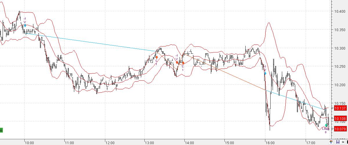 He estado estudiando un poco lo que ha dicho agmageton. No consigo interpretar suficientemente lo de "tiempo, cruces y volatilidad" para hacer un indicador de lateralidad. No obstante, he estado mirando cosas, y las Bandas de Bollinger, en teoría, se estrechan cuando se produce un una figura lateral.