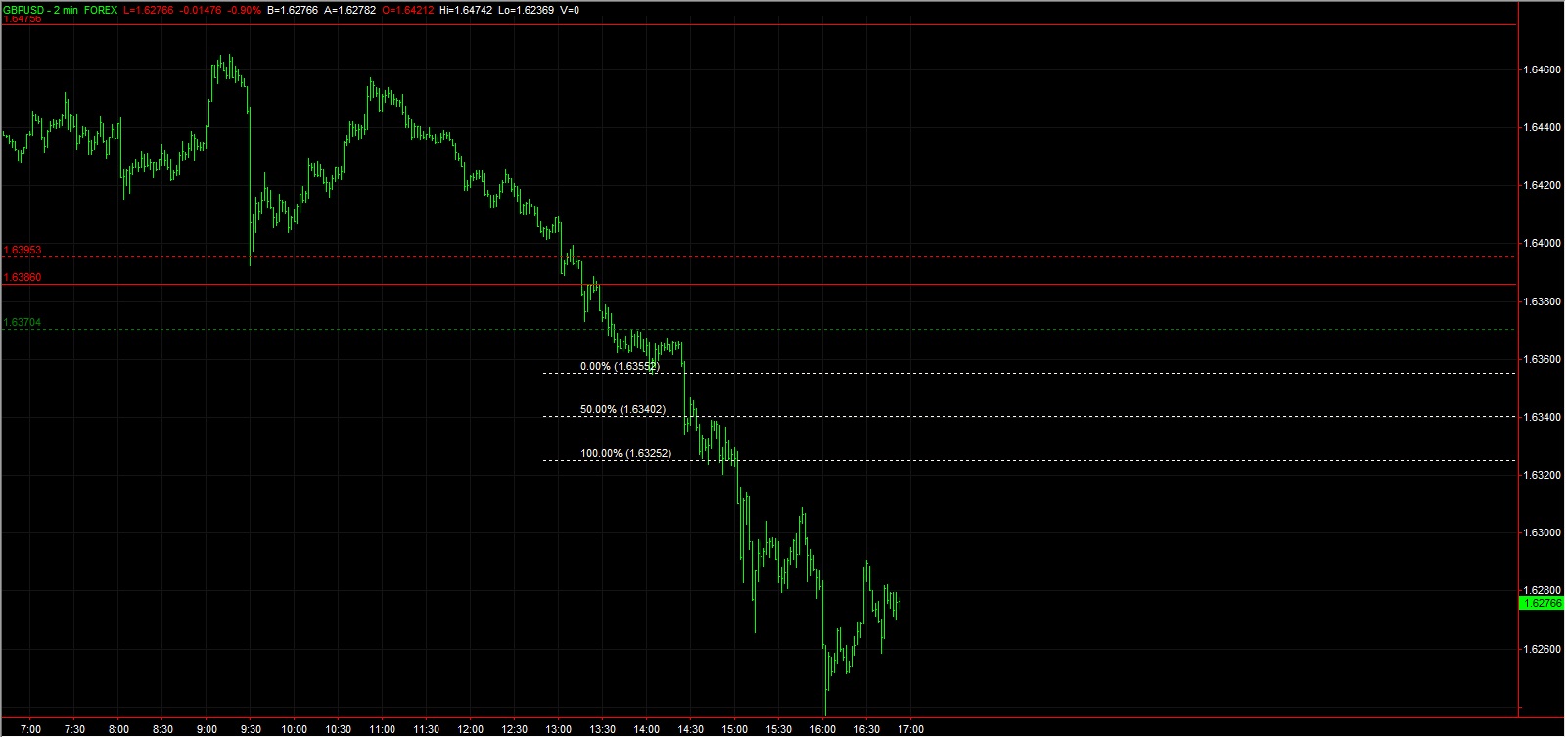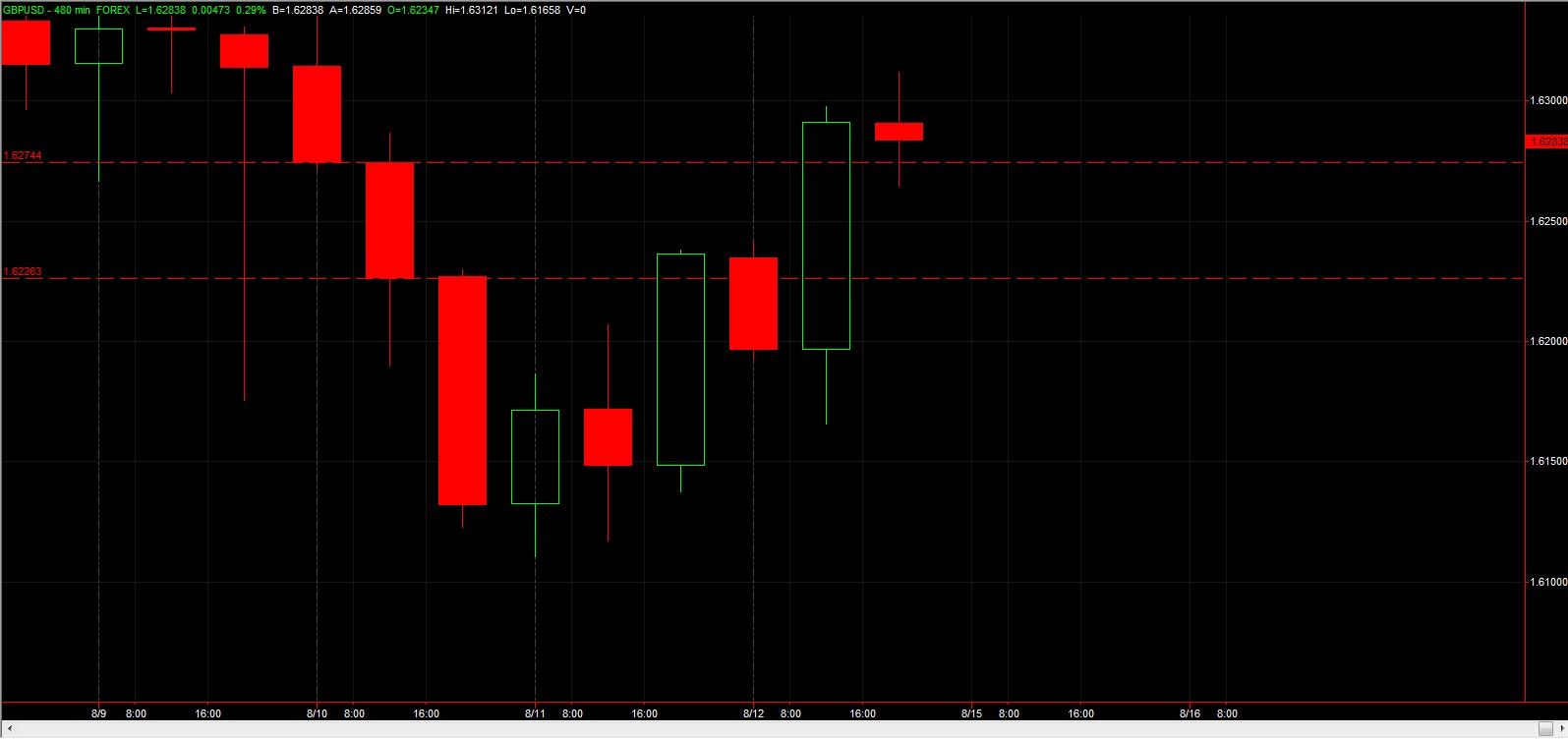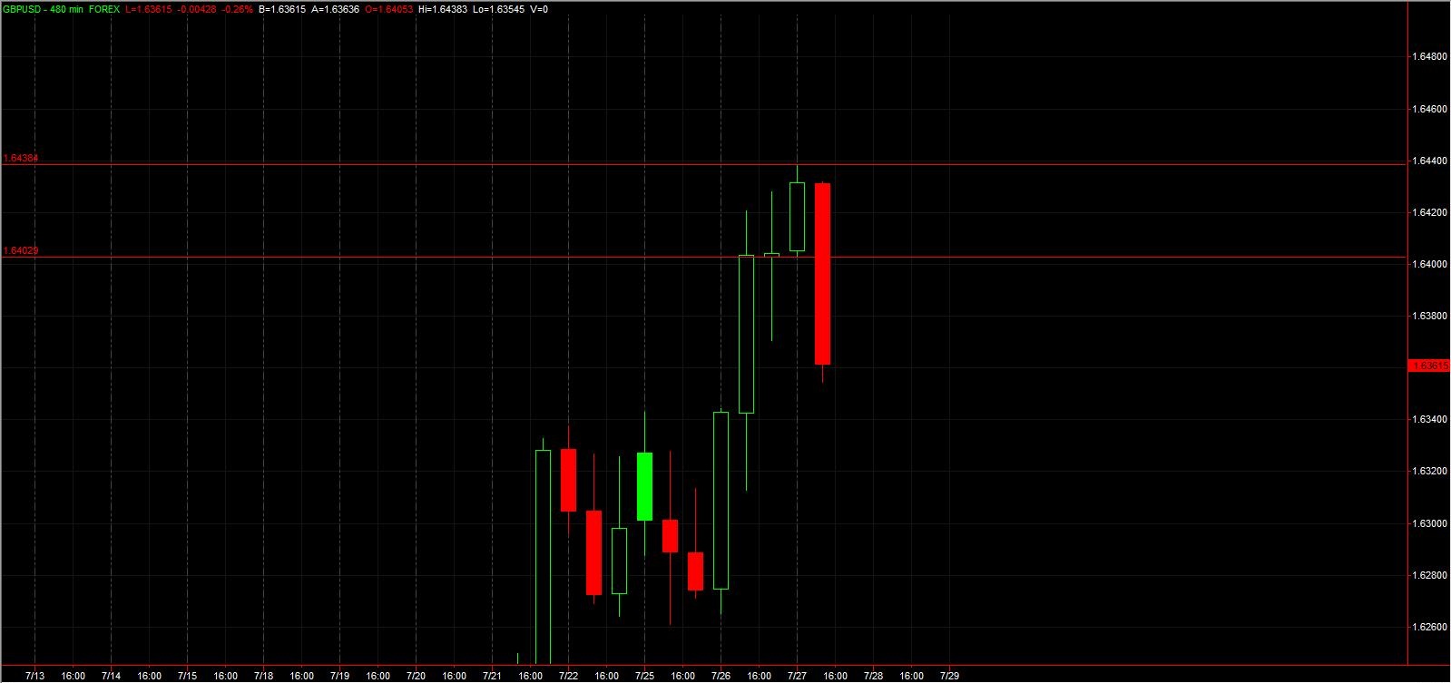 Marcamos los niveles de observación, GBP USD, con el precio de la apertura y de cierre.