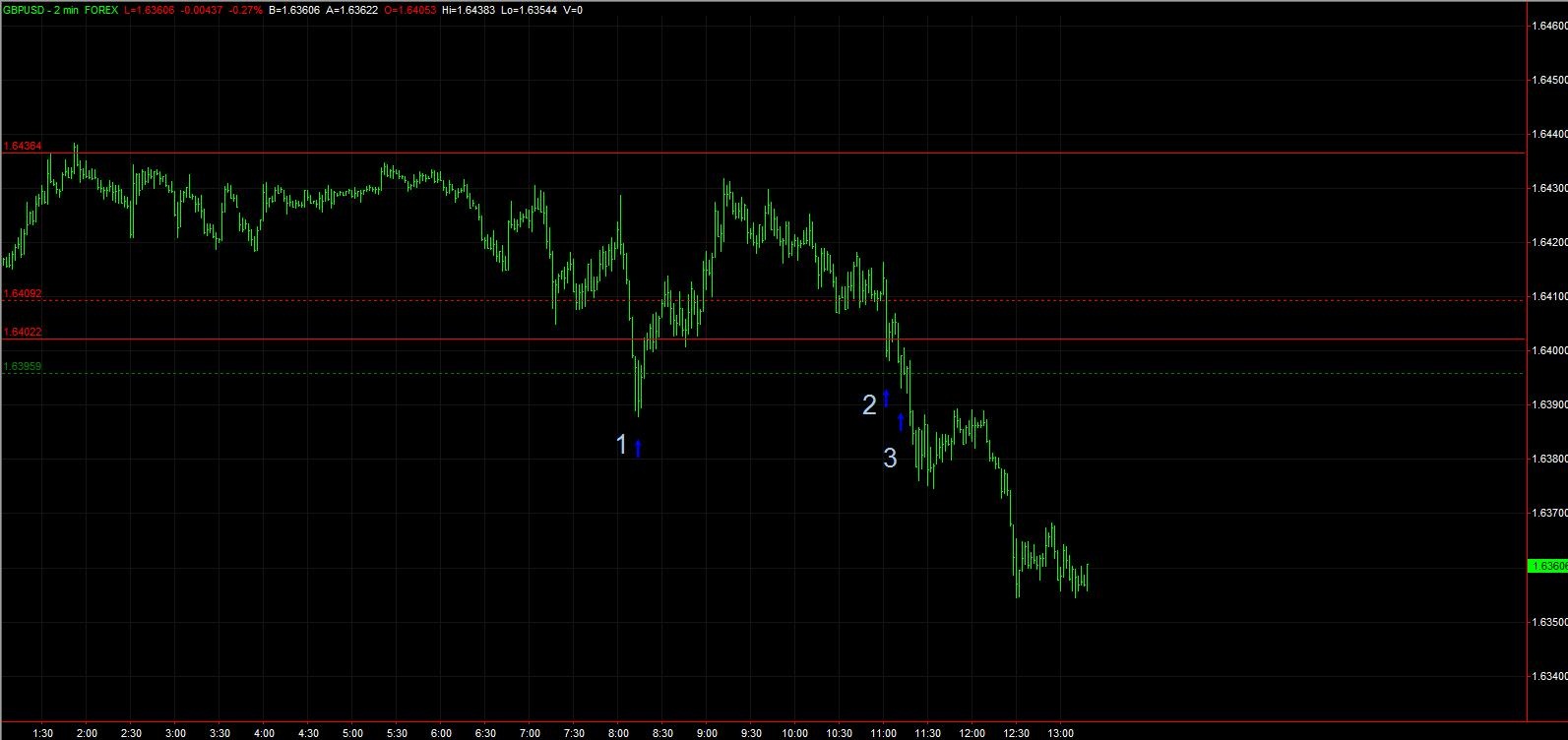 Cuando el precio ha alcanzado el nivel 1.6355, compro el primer0 lot o 15 pips. Muevo stop de predida al nivel 1.6382.
