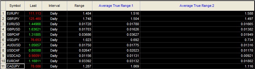Como se calcula puedes encontrar en libros, lo que a mí me interesa, cuanto se mueve un par monetario de su alto hasta el bajo, es decir su valor de 14 y de 100 periodos en el grafico diario, cual es potencial de movida.