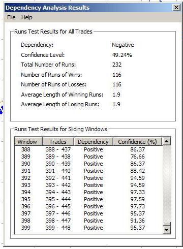 ya tenéis un artículo en x-trader sobre rachas. Yo lo que quisiera es un test que no requiera de ir contando agrupaciones, porque interpreto que responde a una pregunta concreta. Quiero un test unitario; o un programita que me detecte las posibles agrupaciones, o lo que sea. Quiero dejar de montarme mis test cutres para cada aspecto que se me ocurre.
