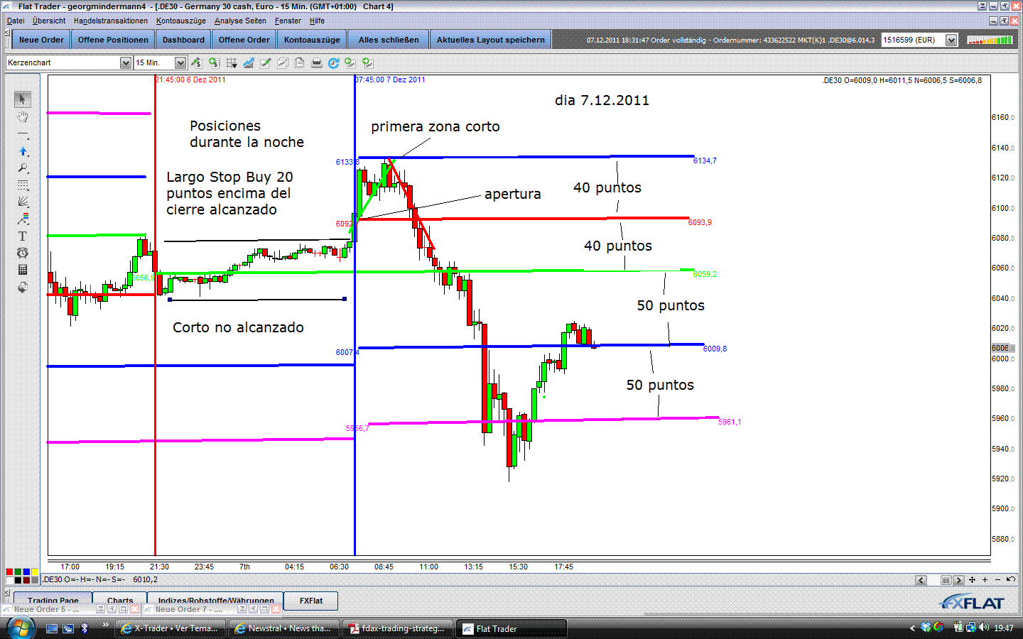 ) Aquí mando una imagen de la apertura de hoy aplicando las condiciones de george con cierre y apertura día posterior de FDAX y aplicando los márgenes en función de VDAX al cierre de ayer. Repito, es solo un esbozo de lo que he podido sacar del documento en alemán. Las zonas de color es el nivel de entrada para largos/cortos.