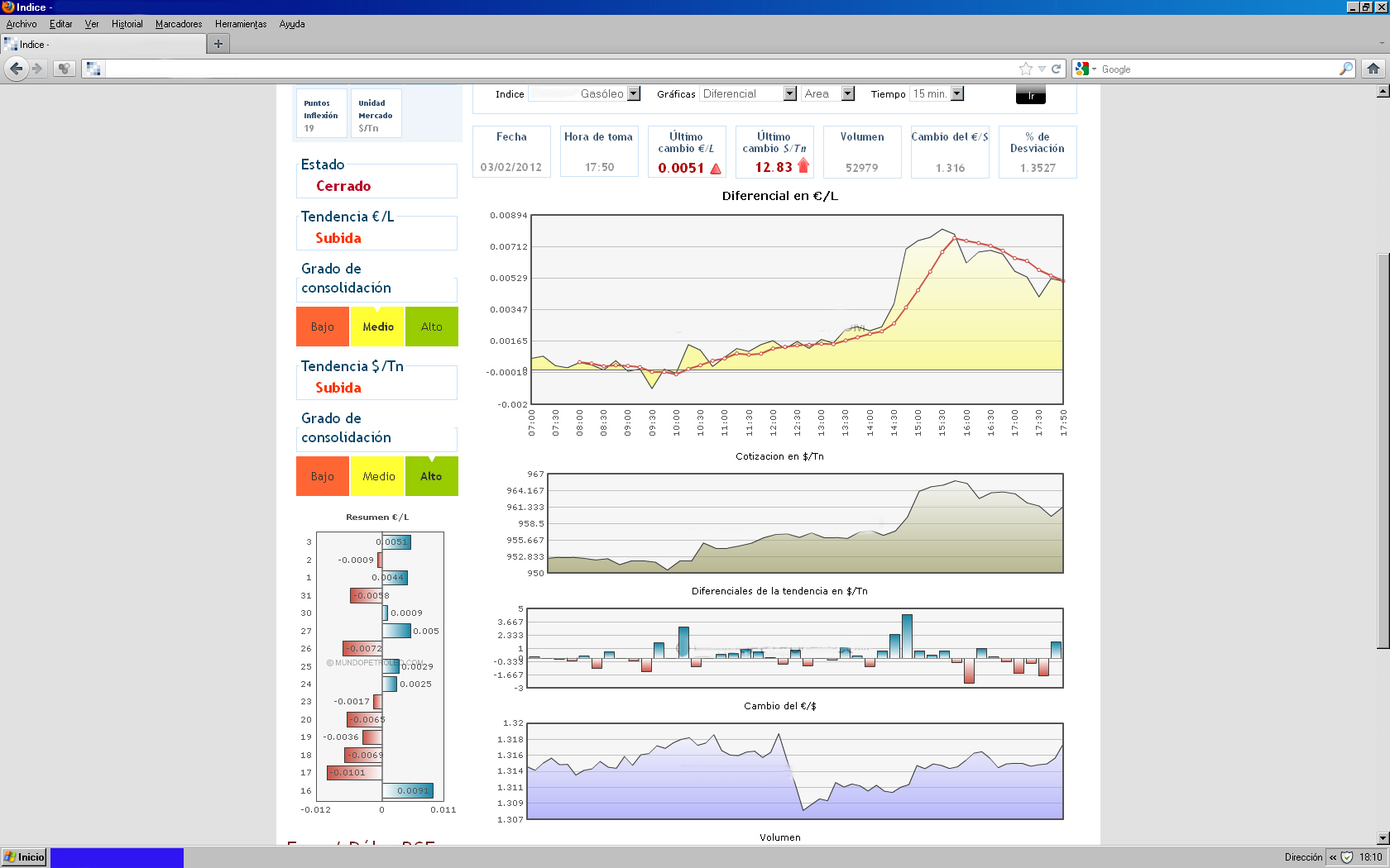 Hola. Por mi empresa suelo comprar bastante gasóleo. Me he suscrito a una página web que me dan una estimación de si el gasóleo va a subir o bajar o cual es su tendencia en base unos parámetros. Como me va bastante dinero en ello y no acabo de fiarme, os agradecería me dijeseis si sabéis como realizan esos cálculos o llega a esas estimaciones. Os dejo unos gráficos de la información que me da por si os sirven. Gracias
