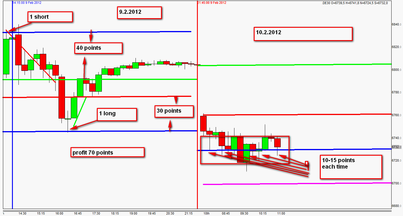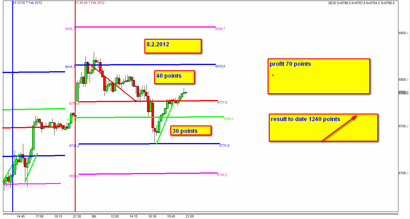 Hoy a primera hora de la mañana no he podido operar. Me incorporé a la sesión sobre las 12:00, un poco tarde para intentar tomar algún trade en la zona 1. De todas formas, quería poner a vuestra consideración mis análisis, siguiendo los criterios de la estrategia. La cotizazón del FDJI a las 08:00 tenía un gap de -45 puntos con respecto al cierre del día anterior. Muy cerca de los +/- 50 puntos que pueden marcar un día de tendencia. Cuando me incorporo a la sesión a las 12:15 la diferencia era ya de -59 puntos... y cuando el precio alcanza una hora más tarde la 2 zona logn el FDJI marcaba -75 puntos... Todo ello hizo que no entrara largo en la zona y quedarme fuera del mercado.
