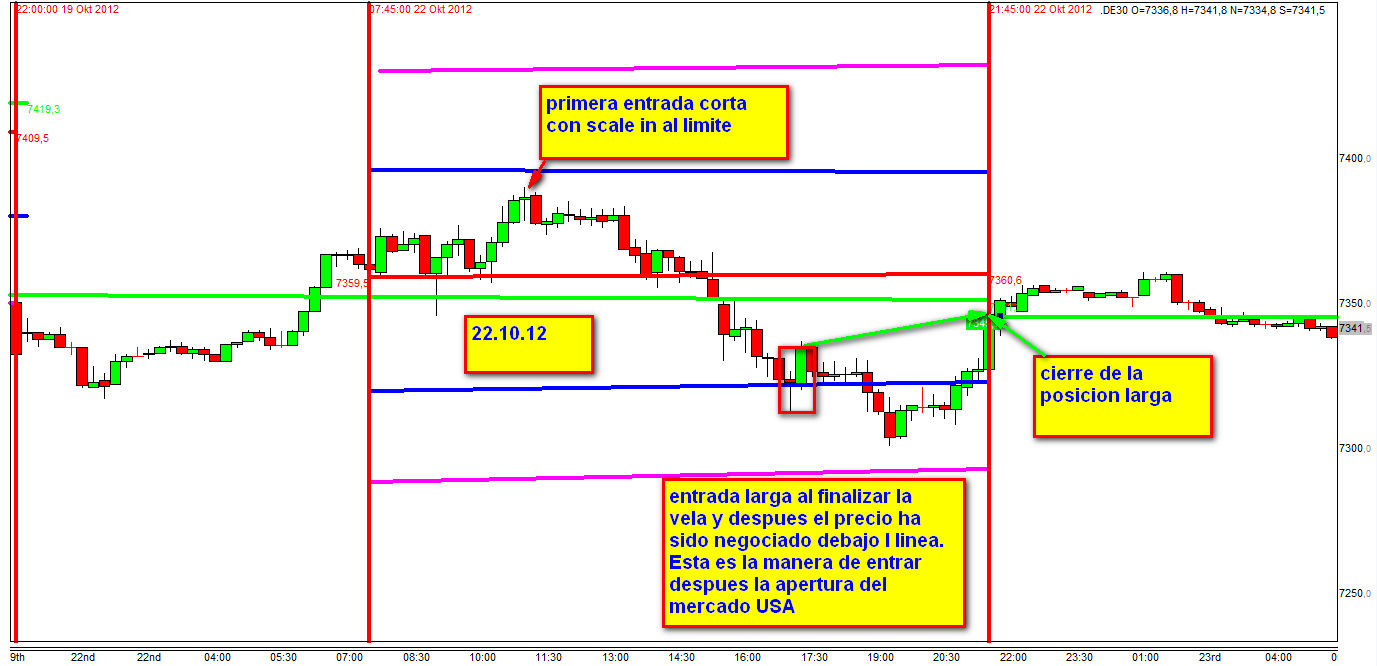 Habiendo alcanzado beneficios durante el día, una entrada en la segunda zona después de 14:30h significa un riesgo mayor si los DJIA FUT son cotizadas +/- 80 puntos.