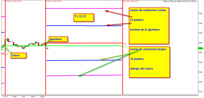 La apertura con 3 contratos, unidad de trading, en la primera zona sufro una pequena cogida y con el cambio de tercio la entrada de 6 contratos largos en la segunda zona, como preve la estrategia, nos condujo a la puerta grande.