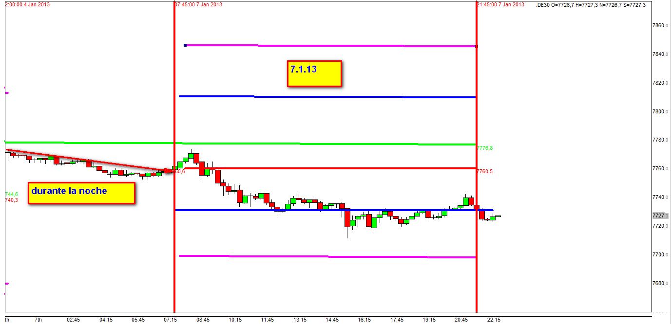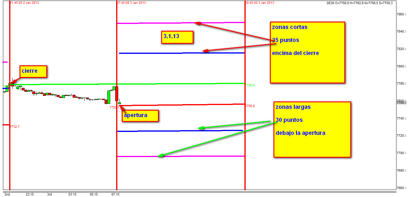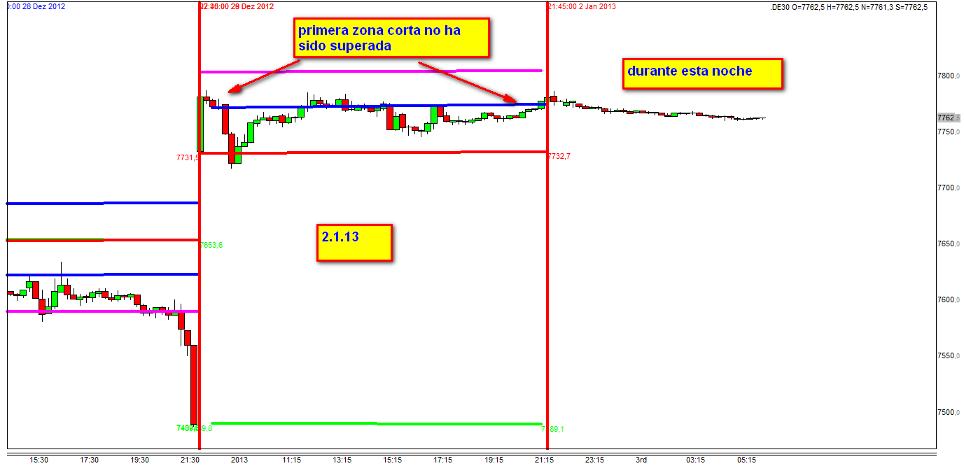 Ayer teniamos un inside day con poco movimiento que es normal despues de un dia alzista tan pronunciado como el 2.1.13.