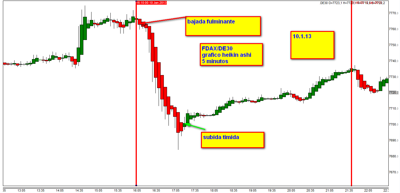 Despues de un reverse por la tarde el DOW manda y el FDAX sigue la bajada a raja tabla
