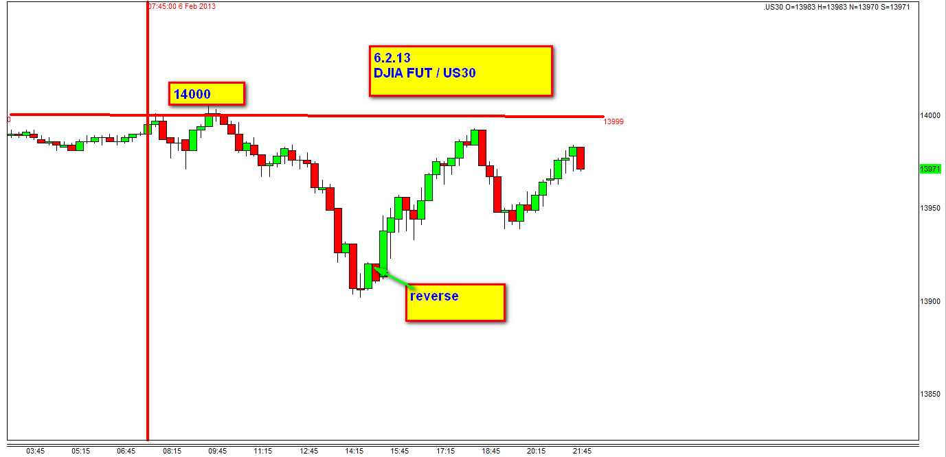 Esta manana teniamos la situacion que el precio del DOW rebotaba al alcanzar 14000 y al producirse un reverse