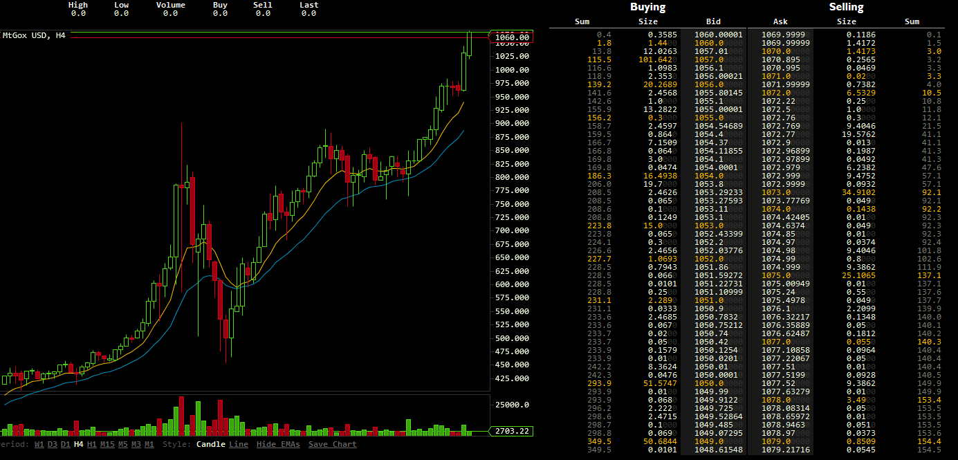 Ahí le tenemos, por encima de 1.000$ ya (estaba planteándome pillar en la zona de 300-400$), la rentabilidad acumulada es de 7.600% este año, ahí es nada.