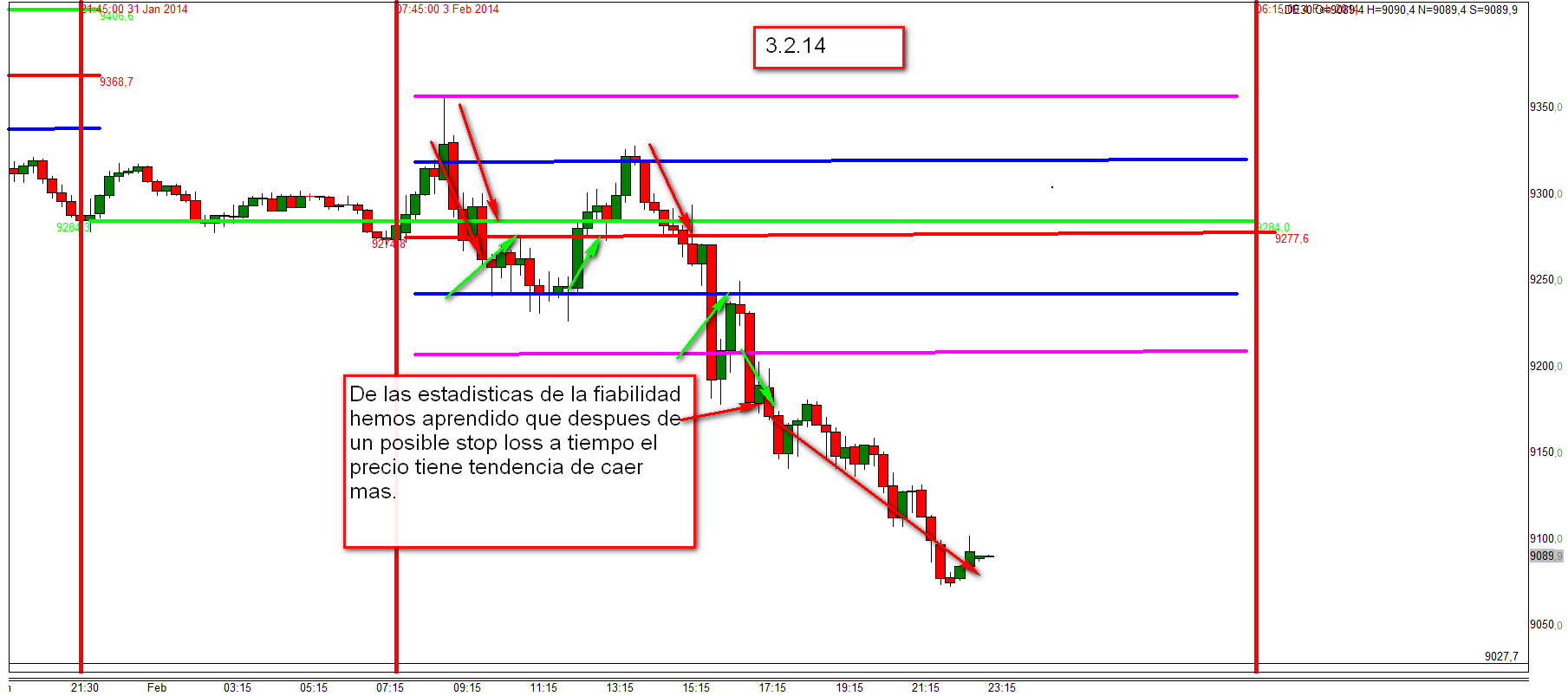 Este estudio realizado de la fiabilidad se basa en entradas al tocar las rayas de las zonas con recorrido hasta la siguiente zona, sin tener en cuenta la hora ni la cotización del Dow. Sin embargo con un stop loss a tiempo.