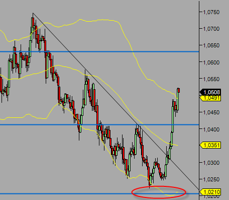 Vemos que el soporte que teníamos marcado desde diciembre, el 1.0414 a funcionado de maravilla, rebotando el precio ahí, después de perder esa zona.