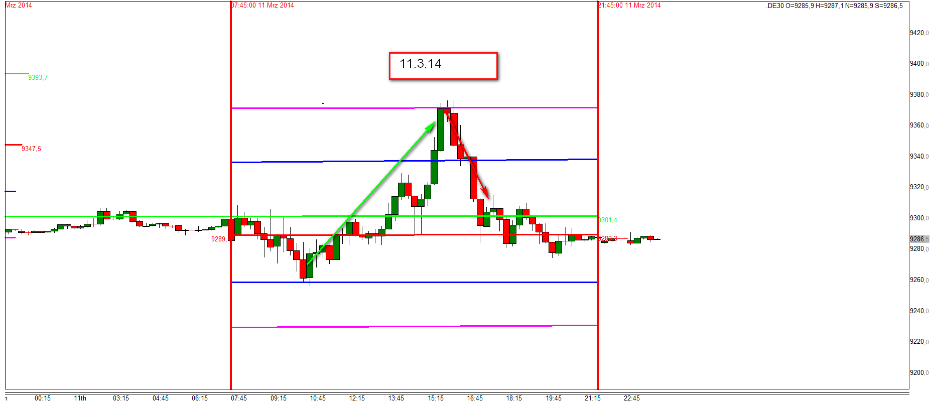 Si hasta las 14:30h posiciones han sido negociadas en y fuera de la segunda zona es mejor no abrir al mismo lado del rango otras posiciones en la primera zona. La posibilidad de bajar o subir otra vez a la segunda zona es bastante alta.
