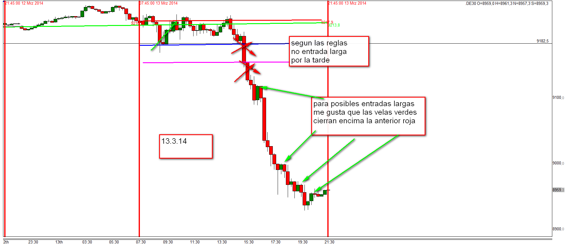 Con respecto al día 10/3/2014, estoy de acuerdo en todo lo que amablemente indicas en el gráfico, lo que no termino de ver es cómo determinaste que la zona del lateral que marcas era de consolidación bajista.